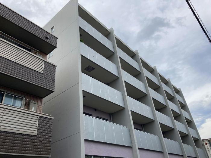 コンクリート打ちっ放しのおしゃれな外観が目を引きます。